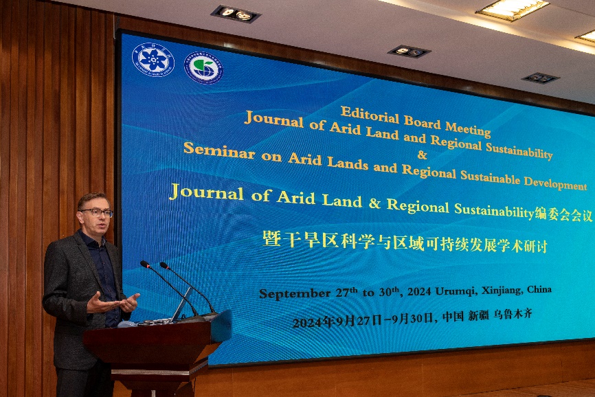 9月28-29日,Journal of Arid Land、Regional Sustainability编委会会议暨干旱区科学与区域可持续发展学术研讨会在乌鲁木齐召开。中国科学院新疆生态与地理研究所所长、Regional Sustainability期刊主编张元明研究员,德国埃伯斯瓦尔德可持续发展大学林学与环境学院院长、Regional Sustainability期刊合作主编Martin Welp教授出席会议并致开幕词,新疆生地所副所长张道远研究员、波兰西里西亚大学环境学院院长Ewa Bozena Lupikasza教授、中波生态与环境联合研究中心波方执行主任Ireneusz Malik教授等国内外20余所知名高校和科研院所的50余位编委、专家、优秀作者代表以及新疆生地所期刊中心全体编辑参加会议。