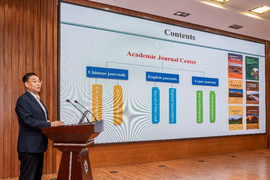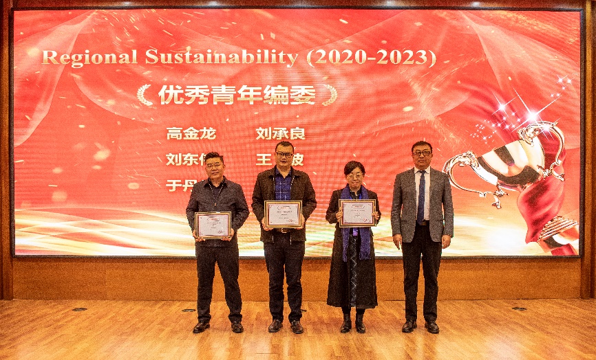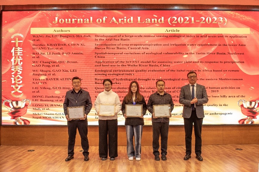 新疆生地所期刊中心主任、Journal of Arid Land和Regional Sustainability期刊执行主编于瑞德研究员以“Journal of Arid Land & Regional Sustainability现状和发展路径”为主题向大会作工作报告,全面总结了Journal of Arid Land和Regional Sustainability近年来在优质稿源建设、期刊评价指标、对外宣传交流、项目申报等方面取得的成效,分析了期刊发展建设面临的形势,并就未来发展思路和下一步工作计划提出建议。会议表彰了Journal of Arid Land和Regional Sustainability优秀论文作者、优秀审稿专家和优秀青年编委,张元明、Martin Welp和张道远为获奖代表颁发了荣誉证书。