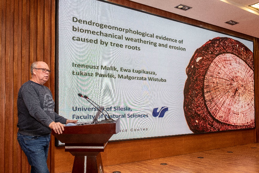 Martin Welp、Ireneusz Malik、Journal of Arid Land副主编李永宏等6位专家学者分别围绕“Systemic and participatory methods for natural resources management”“Exposed tree roots - tool for study on river bank erosion and biomechanical weathering”和“Soil texture regulates climate-vegetation‐soil carbon relationships in semi‐arid regions”作会议主旨学术报告。