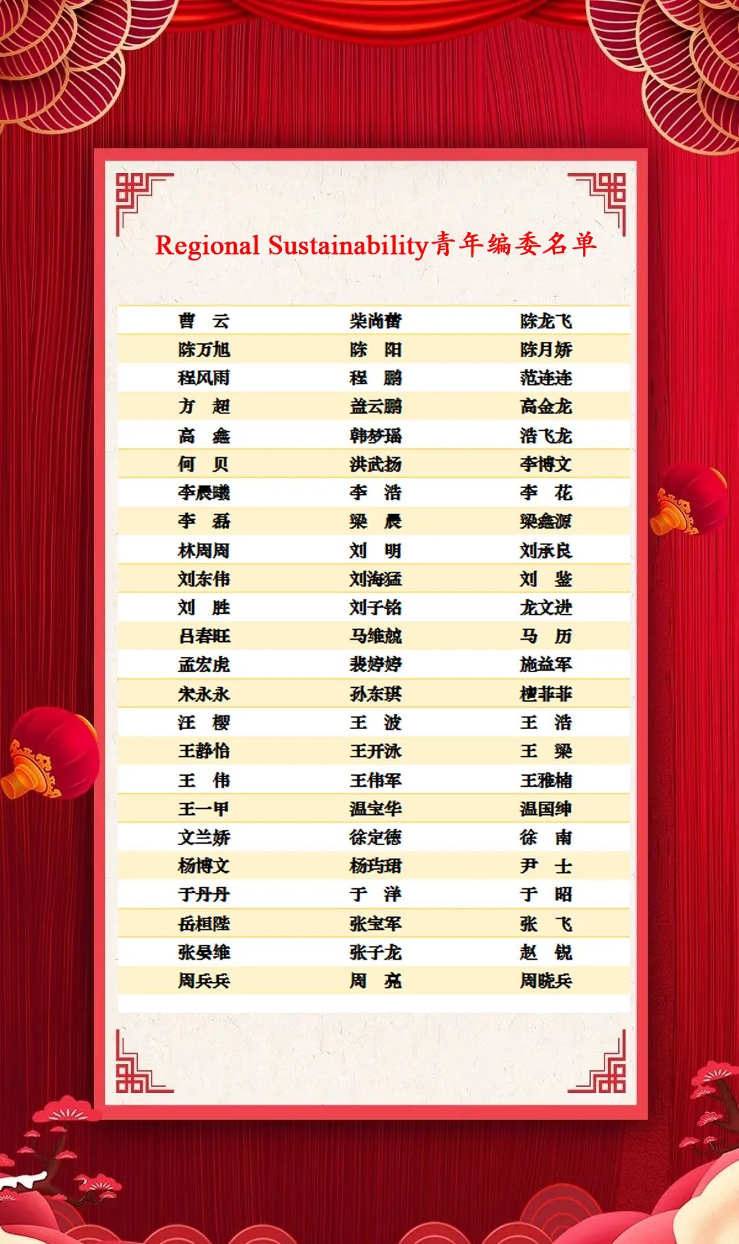 附:Regional Sustainability青年编委名单(注:按姓氏拼音排序)